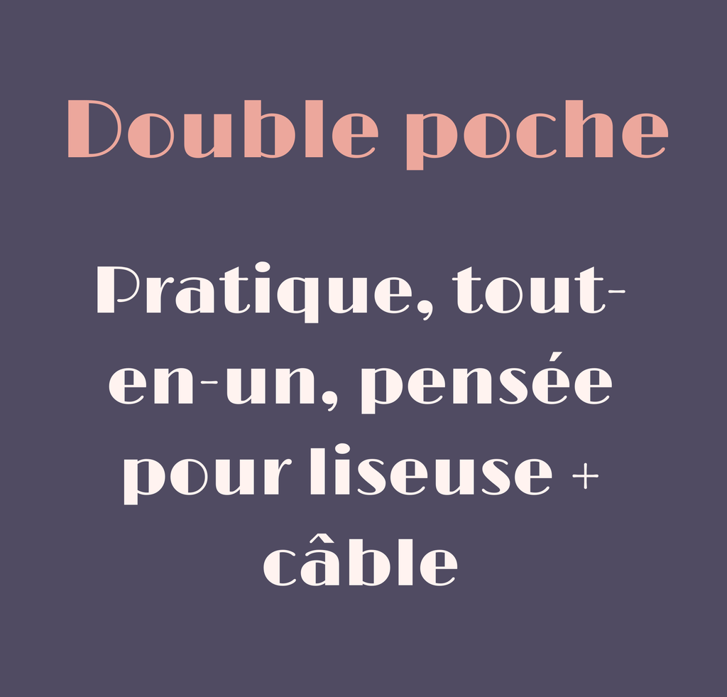 Ses atouts : une grande poche pour la liseuse + une petite poche à l’avant pour ton câble de chargement. Pratique, organisée, prête à te suivre partout.