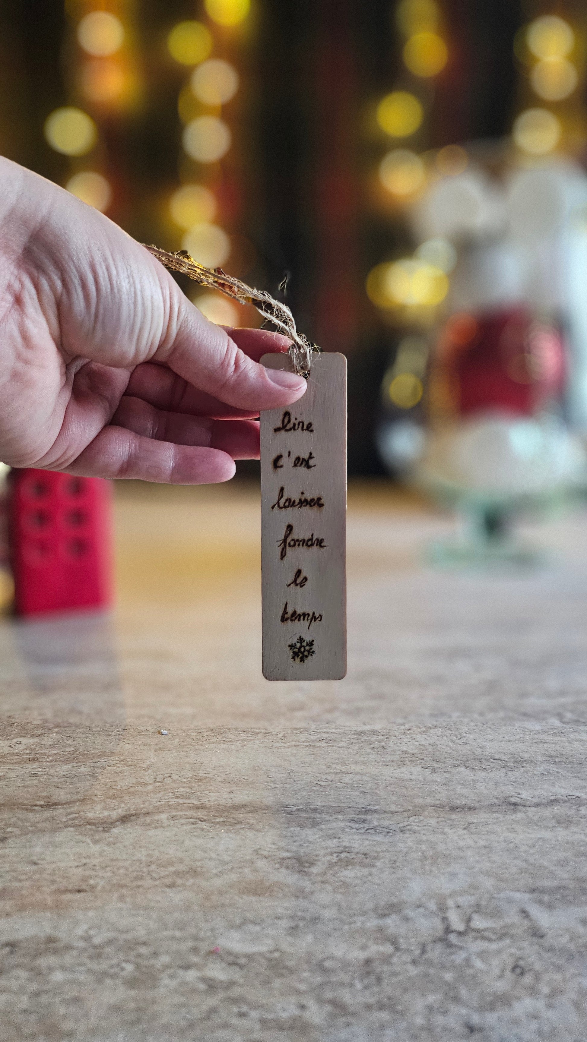 Ce marque-page est en bois non traité : il aime la douceur, pas l’eau. 💧