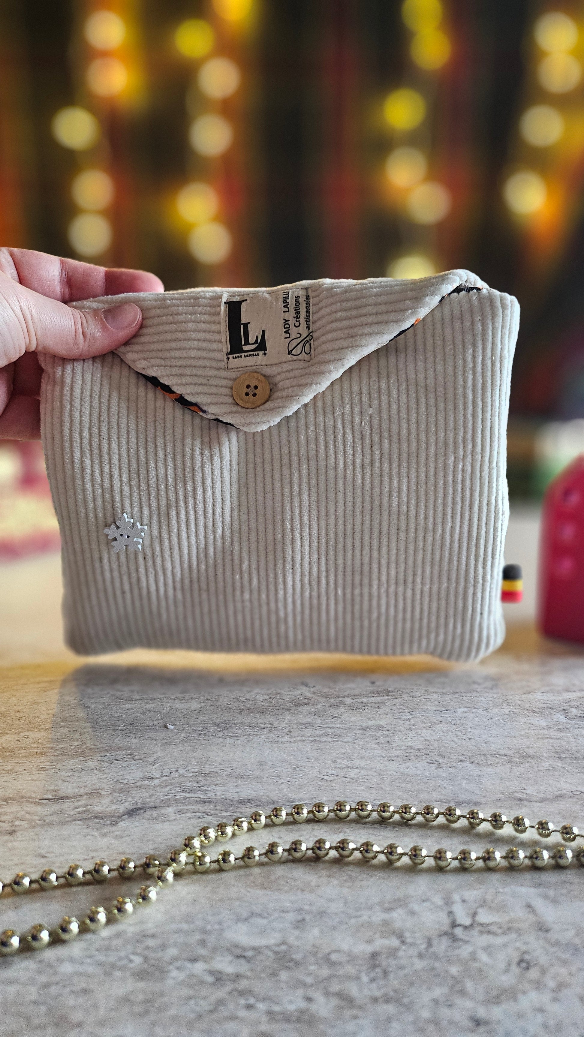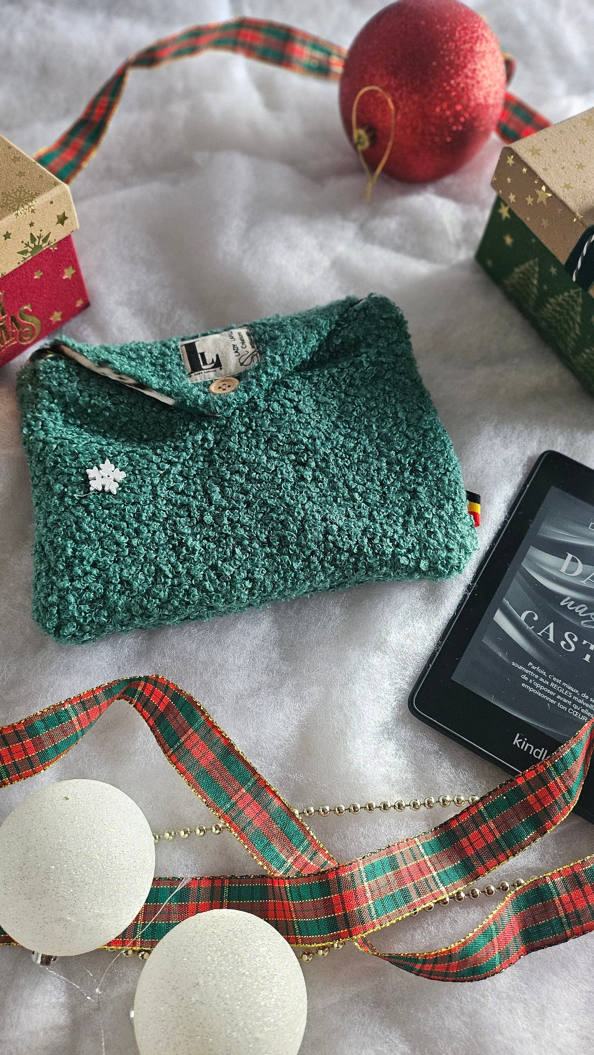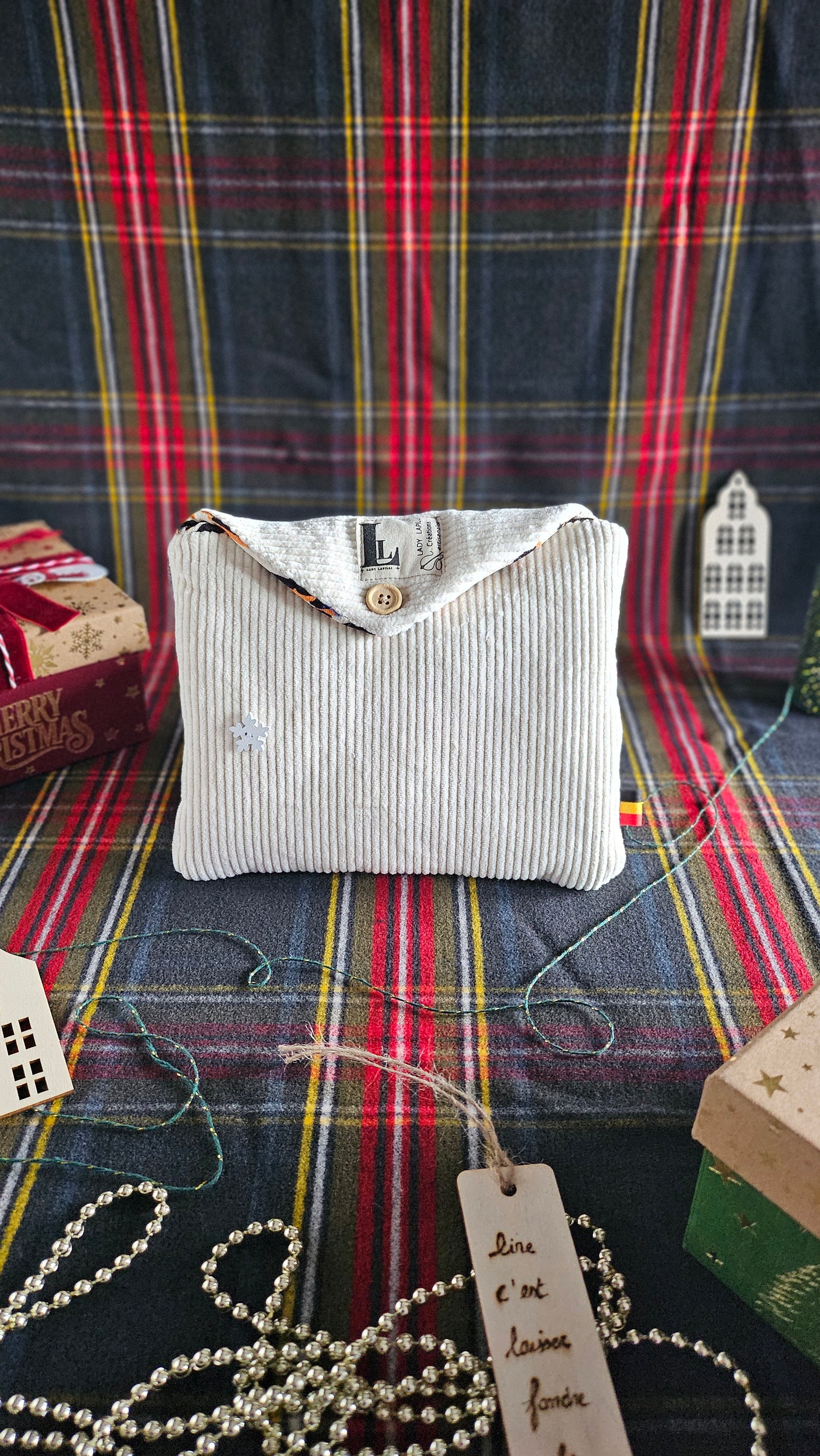 Les tissus utilisés pour la fabrication de cette pochette sont totalement upcyclés. L’intérieur est doublé avec une ouatine pour protéger vos précieuses liseuses