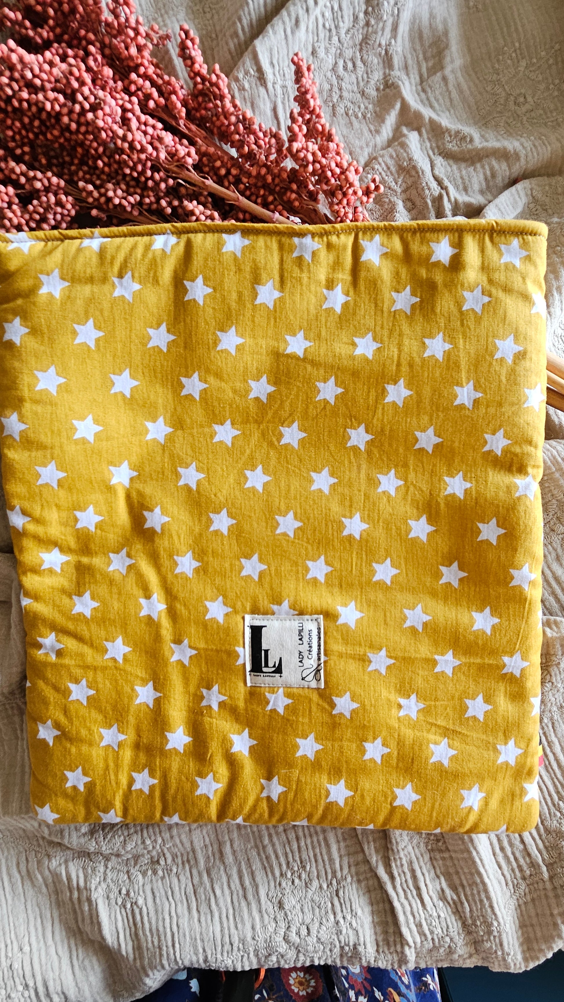 Les tissus utilisés pour la fabrication de cette pochette sont totalement upcyclés. L’intérieur est doublé avec une ouatine pour protéger vos précieuses liseuses